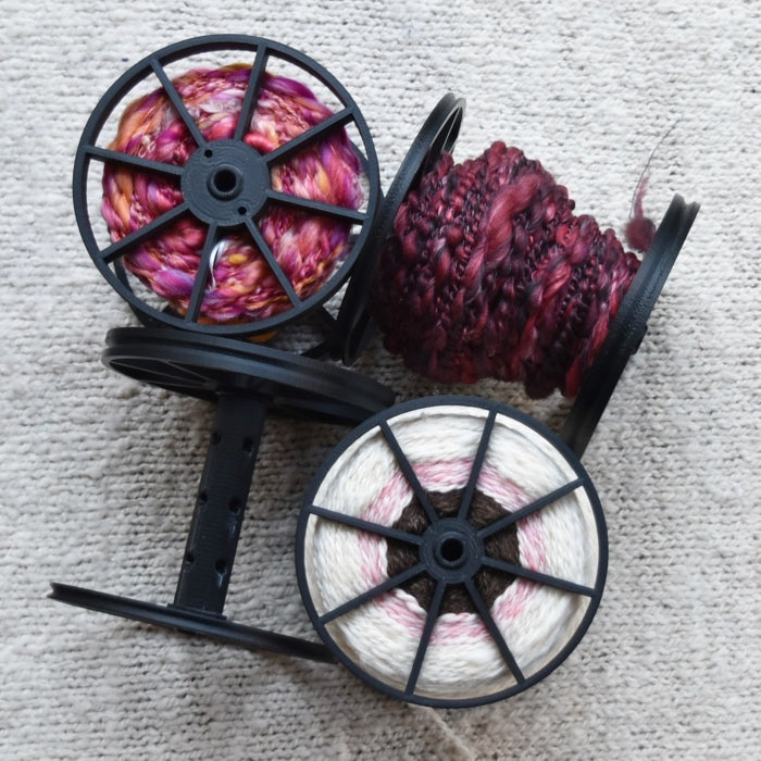 From time to time I stumbled across someone in Australia who makes 3D bobbins in lots of different sizes for spinning wheels and always seemed to misplace the link. So when I found it again recently, I jumped on it straight away and ordered some then and there. I bought 5 of the jumbo (medium) Aura bobbins (not the overdrive ones) and I was not dissapointed!