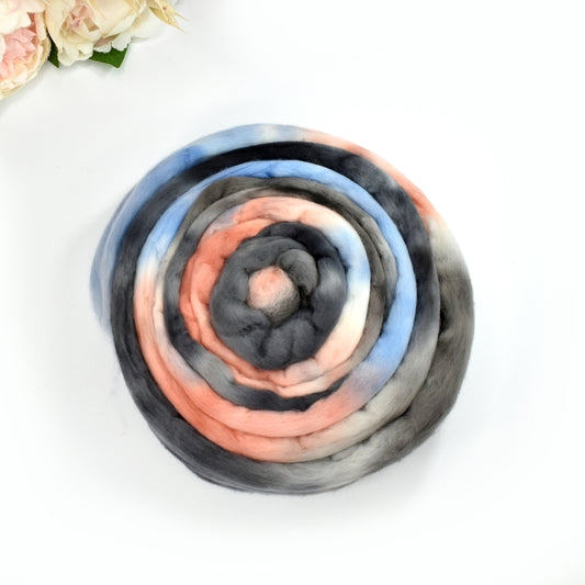 Tasmanian Merino Wool Combed Top Hand Dyed Storm Clouds