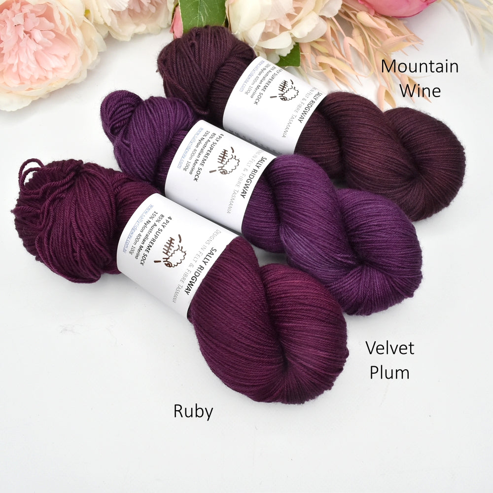 Ruby is a semi solid colour in a rich deep crimson burgundy colour. This one is a strong colour and would be a lovely accent colour to add impact to your knitting.