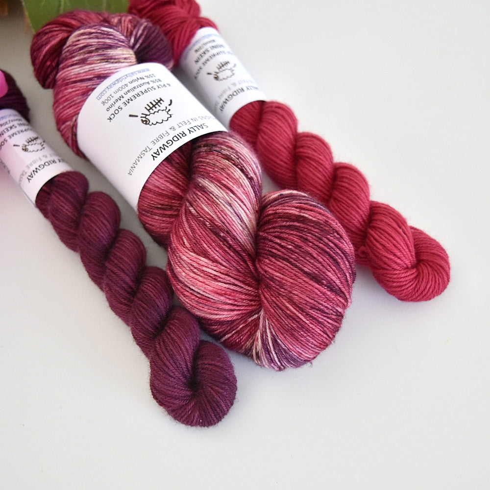 Ruby Red is a lovely combination of a number of red and crimson colours with pops and speckles and light and dark, this colourway will knit up beautifully.
