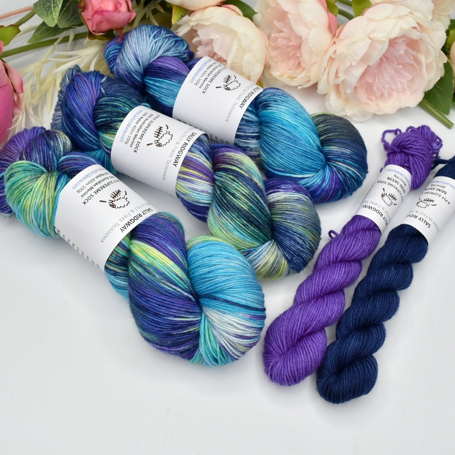 Mini skeins in Egyptian Purple or Steel Blue can be found here