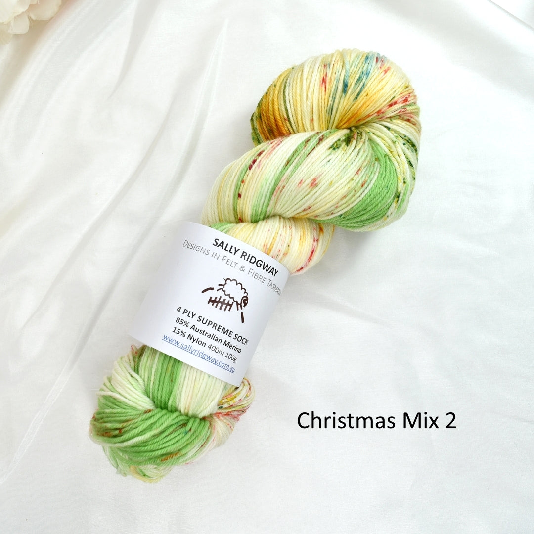 4 ply Supreme Sock Yarn Hand Dyed Christmas Mix