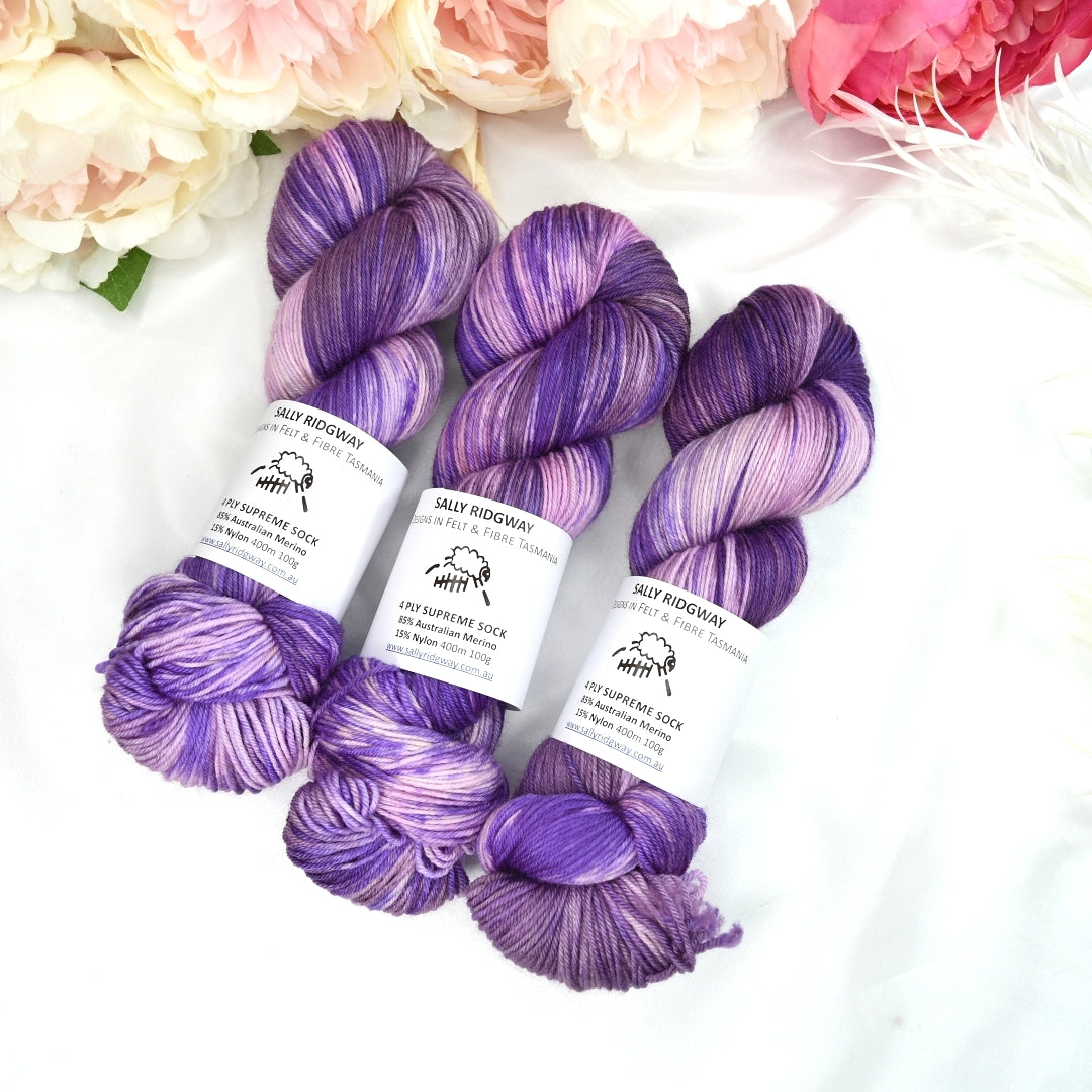 Crushed Amethyst 4 ply Supreme Sock Yarn Hand Dyed
