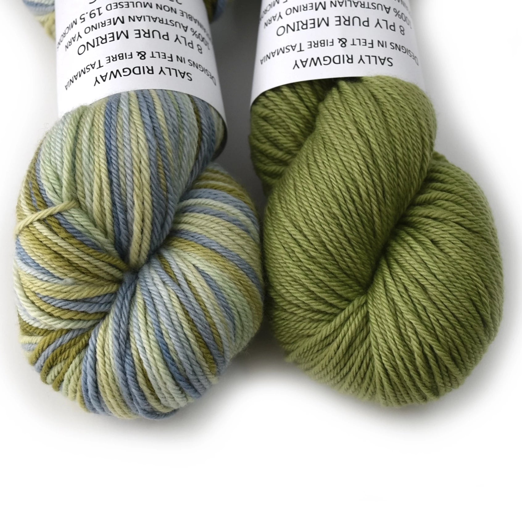 8 Ply Pure Australian New Merino Wool Knitting Yarn Hand Dyed in a lovely soft Avocado Green