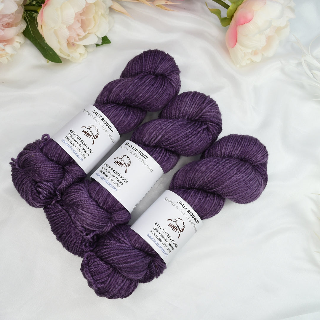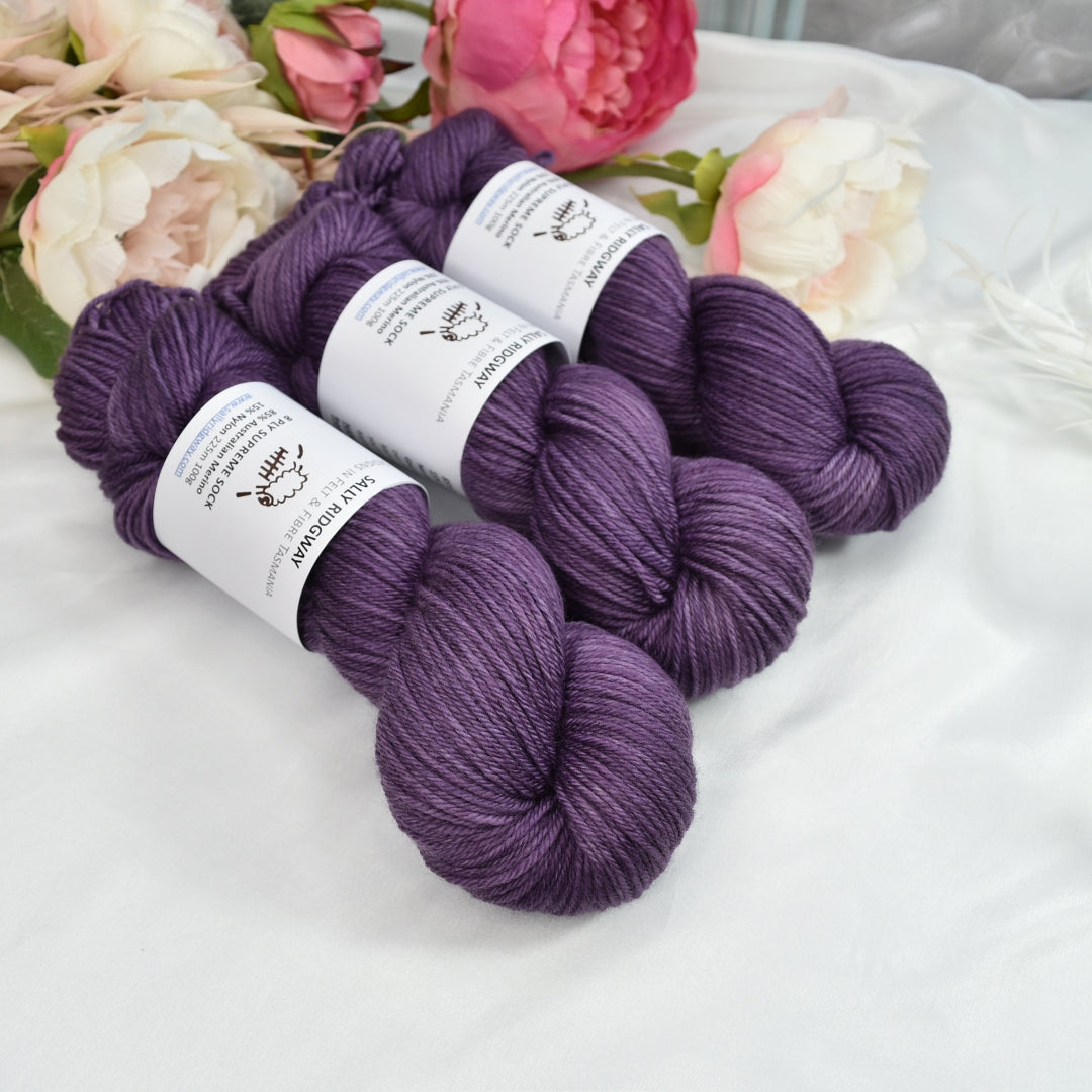 Aubergine is a lovely purple semi solid colour with slight variations throughout the hanks.