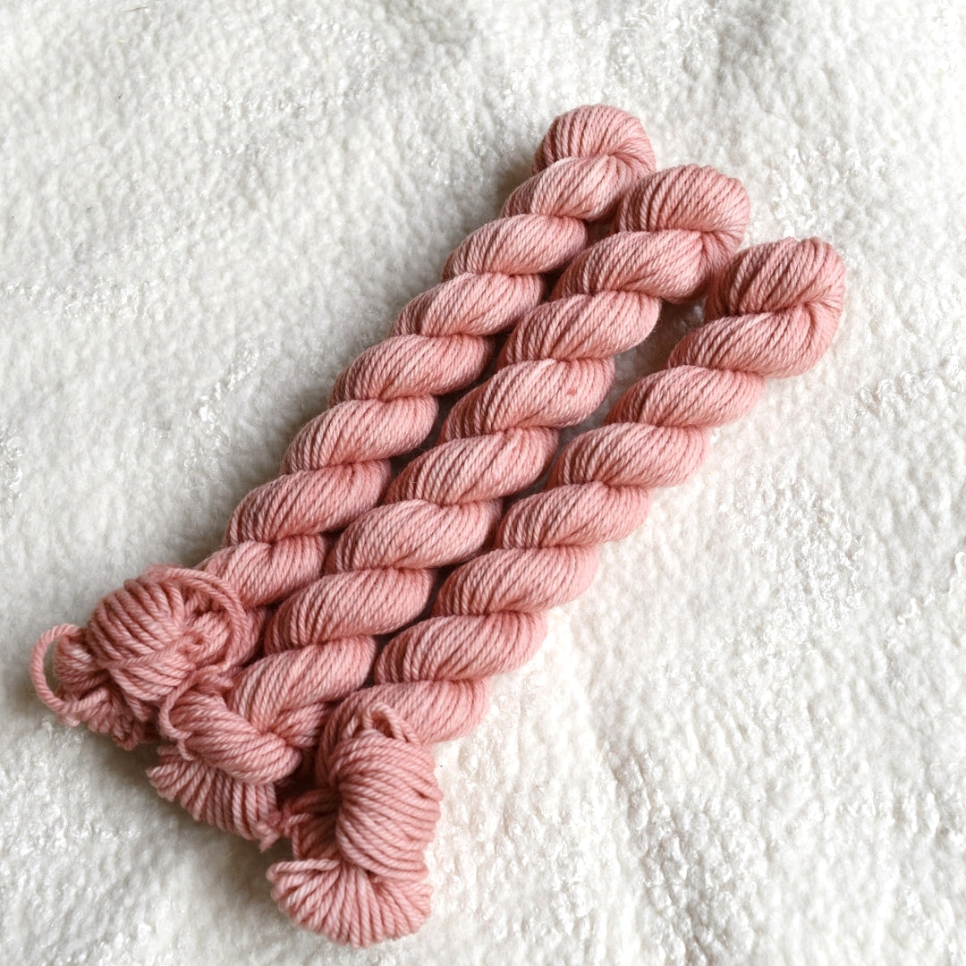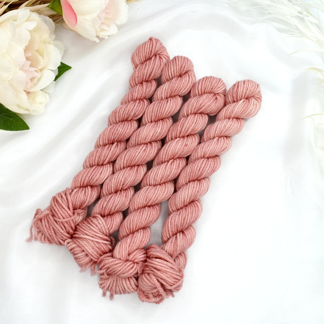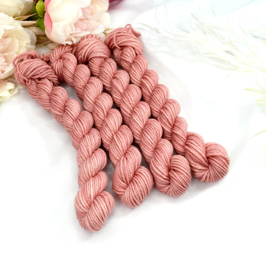 These popular little 8 ply or DK weight mini skeins are perfect to add a little colour to your projects. They compliment my 8 Ply Supreme Sock base perfectly as they are the same merino nylon mix of 85% merino and 15% nylon.