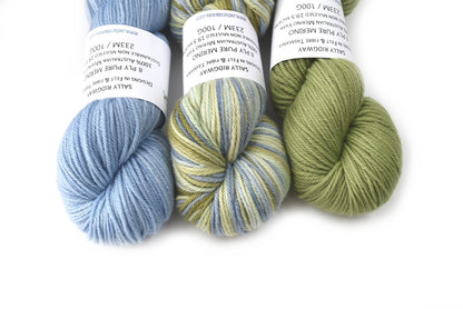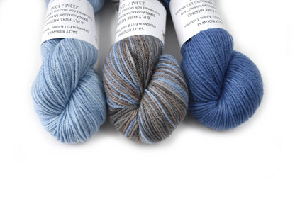 8 Ply DK Weight Pure Australian New Merino Wool Knitting Yarn Hand Dyed Semi Solid in Light Blue