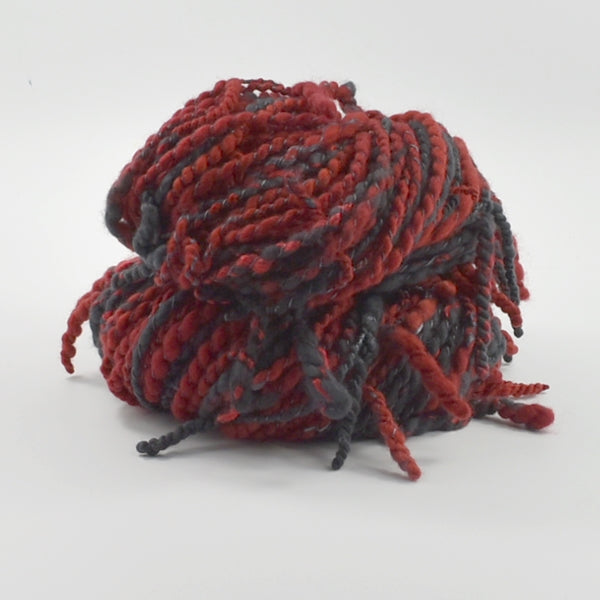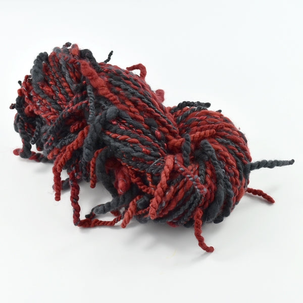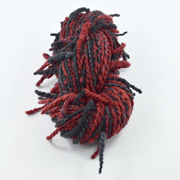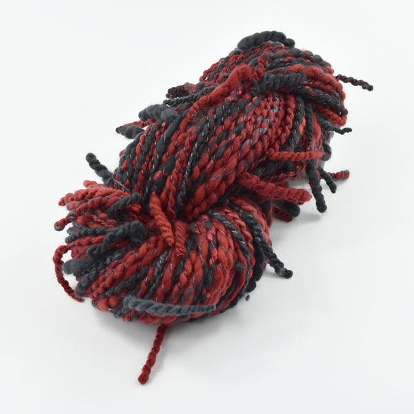 Chunky Merino Wool Hand Spun Art Yarn in Black and Red