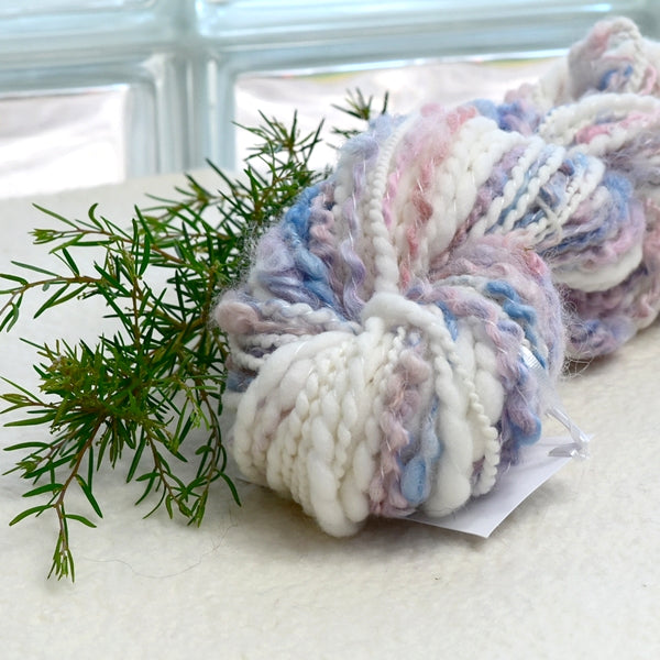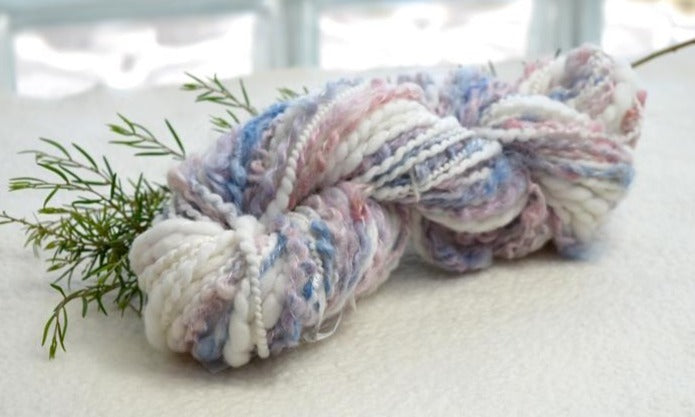 Chunky Hand Spun Art Yarn Knitting Weaving in White Pink Blue