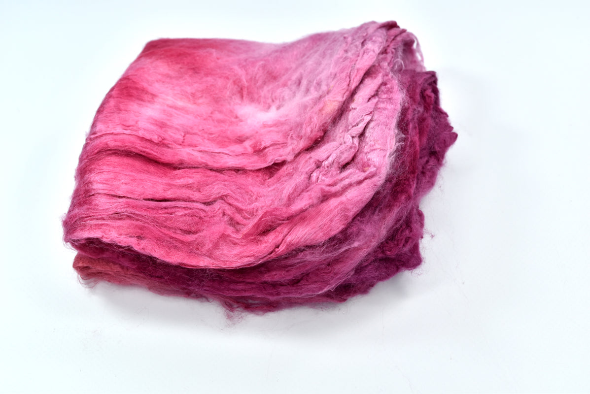 I love the look and feel of silk both in my spinning and in my felting, spread some over a luxury fibre like my beautiful hand dyed merino wool when your felting to give your project a wonderful colourful silky look.