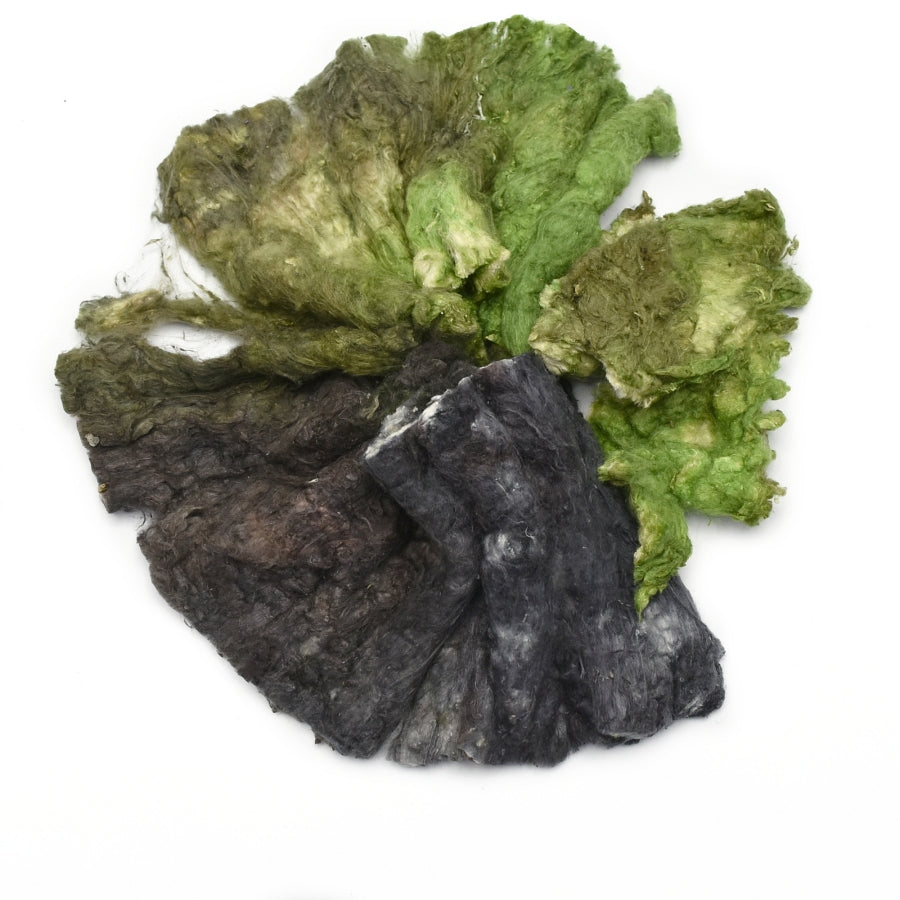 Mulberry Silk Noil Fibre Hand Dyed in Forest