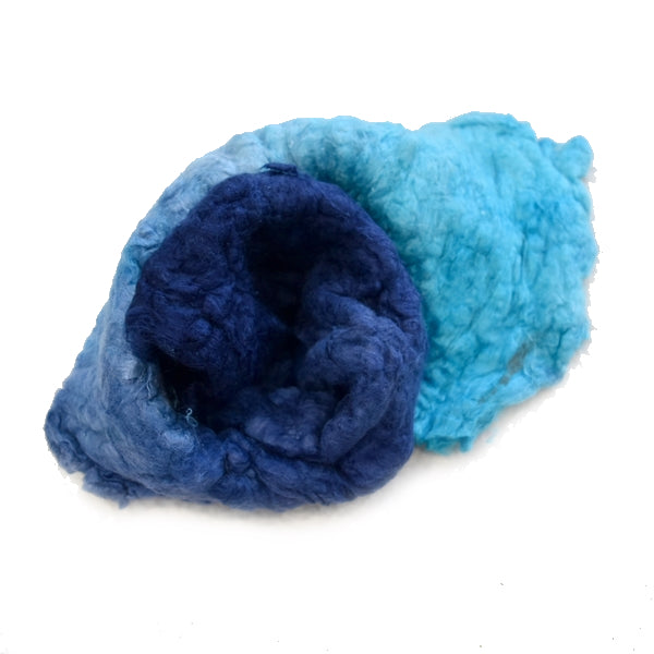 Mulberry Silk Noil Fibre Hand Dyed in Ocean Blue