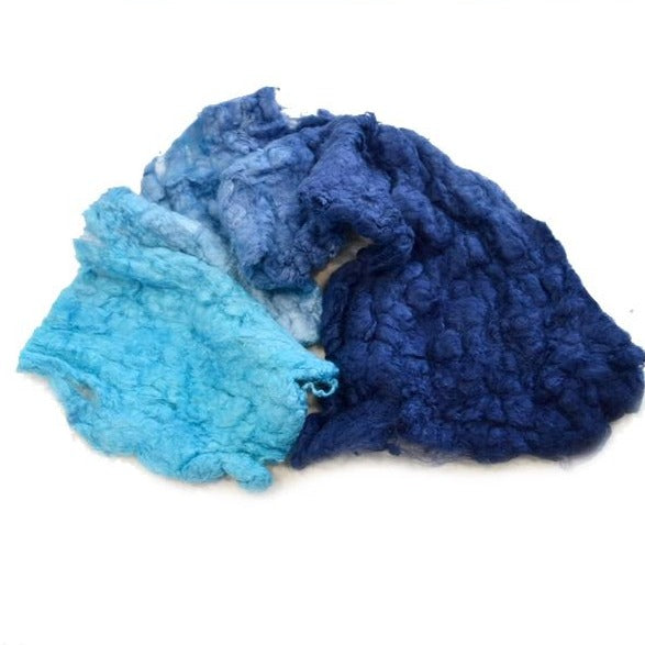 Mulberry Silk Noil Fibre Hand Dyed in a lovely combination or blues.