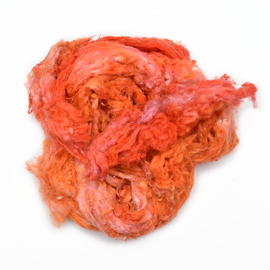 Mulberry Silk Noil Fibre Hand Dyed Orange Punch