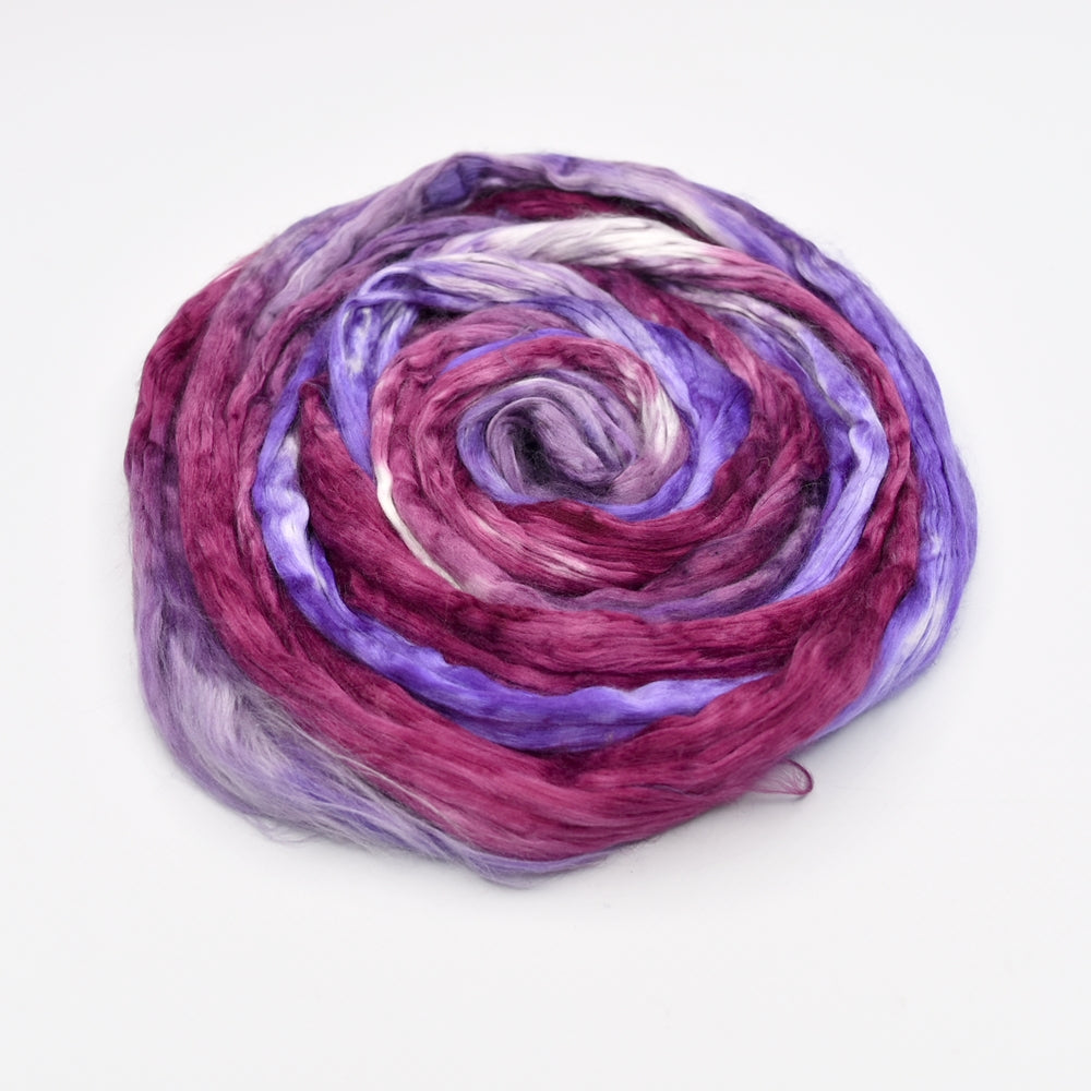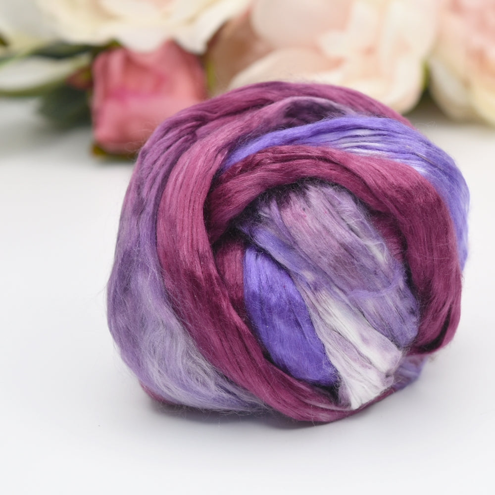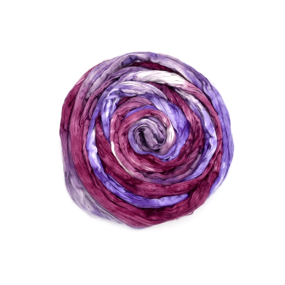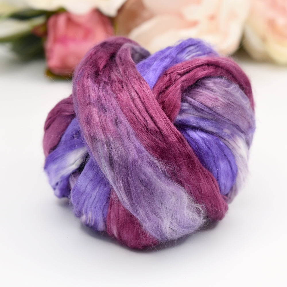Mulberry Silk Roving Hand Dyed in Eggplant