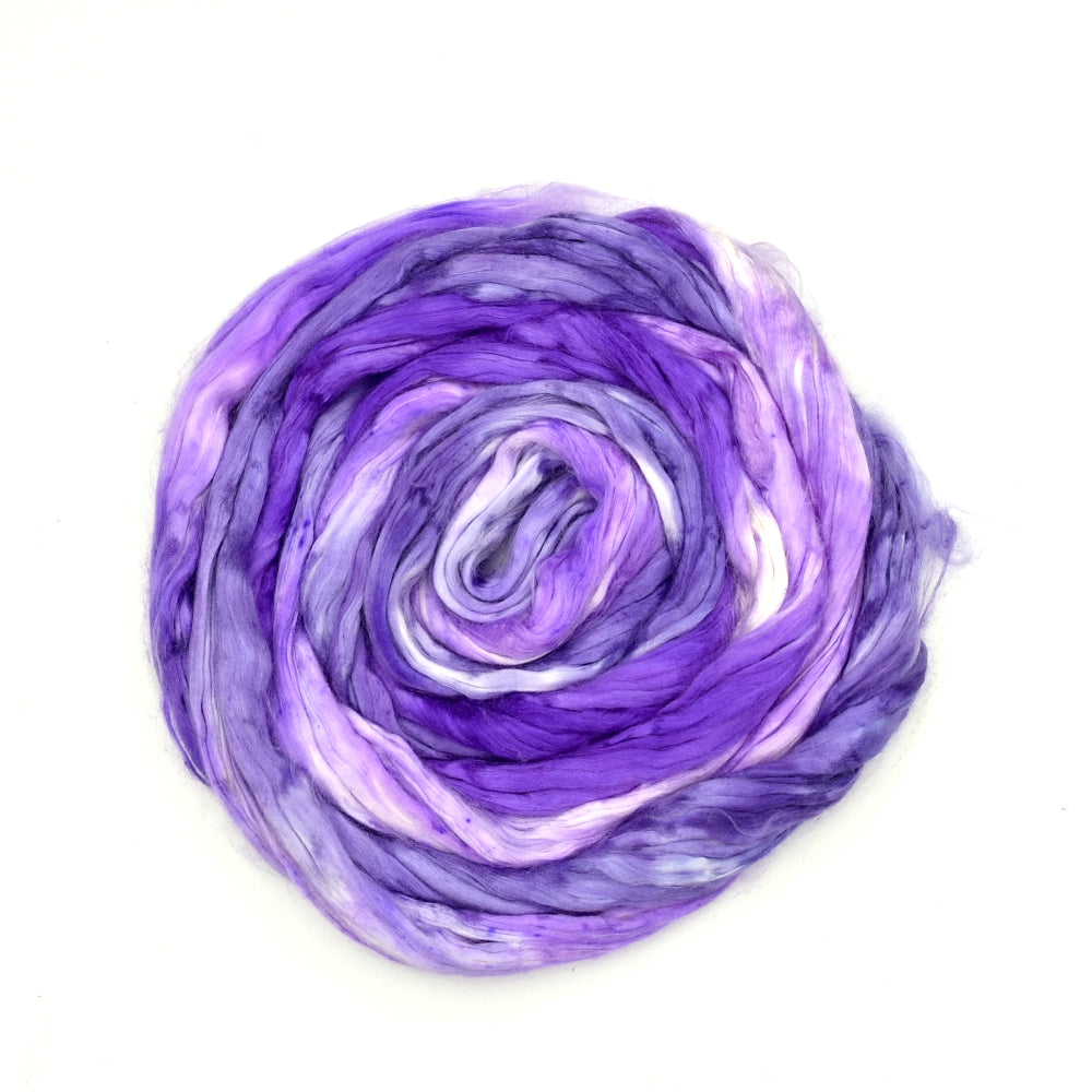Mulberry Silk Roving Hand Dyed in Native Violets