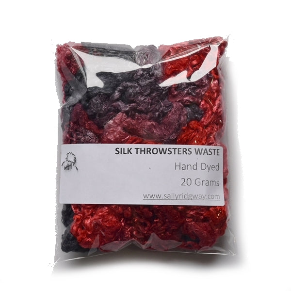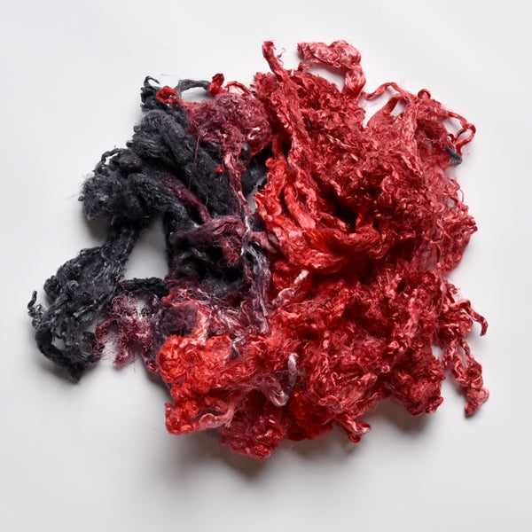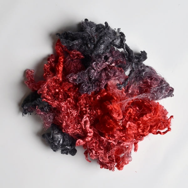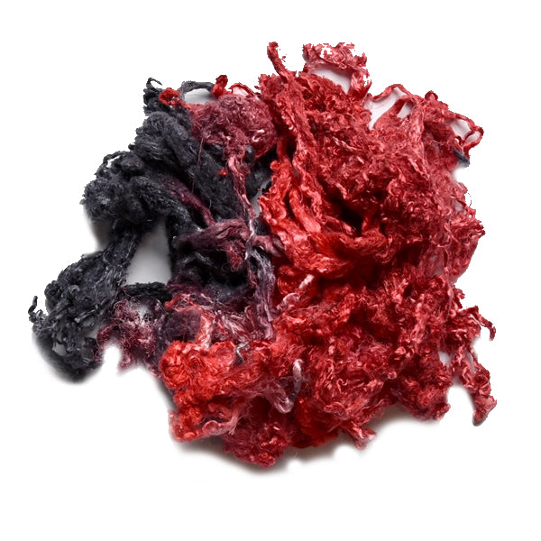 Mulberry Silk Throwster Waste Hand Dyed Black and Red 12633