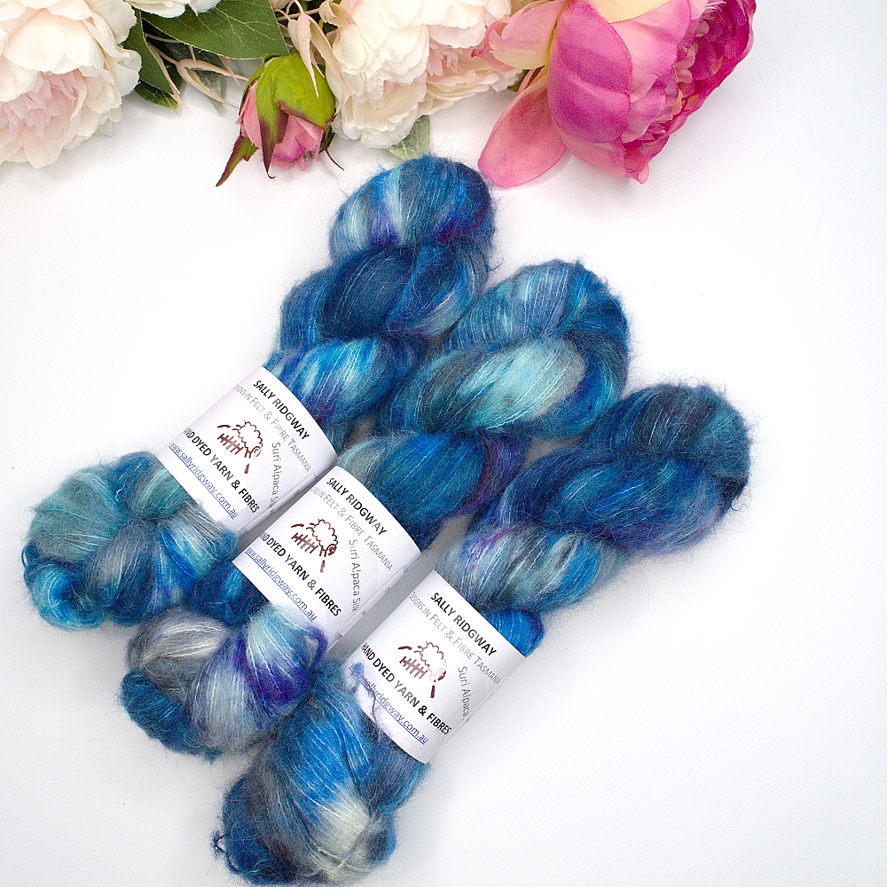 Brushed Suri Alpaca and silk yarns are super soft and very gentle on the skin. These laceweight yarns are perfect for those who are not comfortable with Mohair.