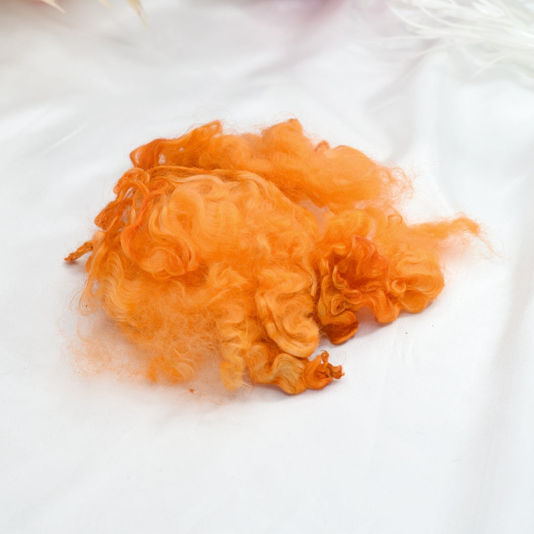 Tasmanian grown English Leicester locks hand dyed in a gorgeous bright orange colour.