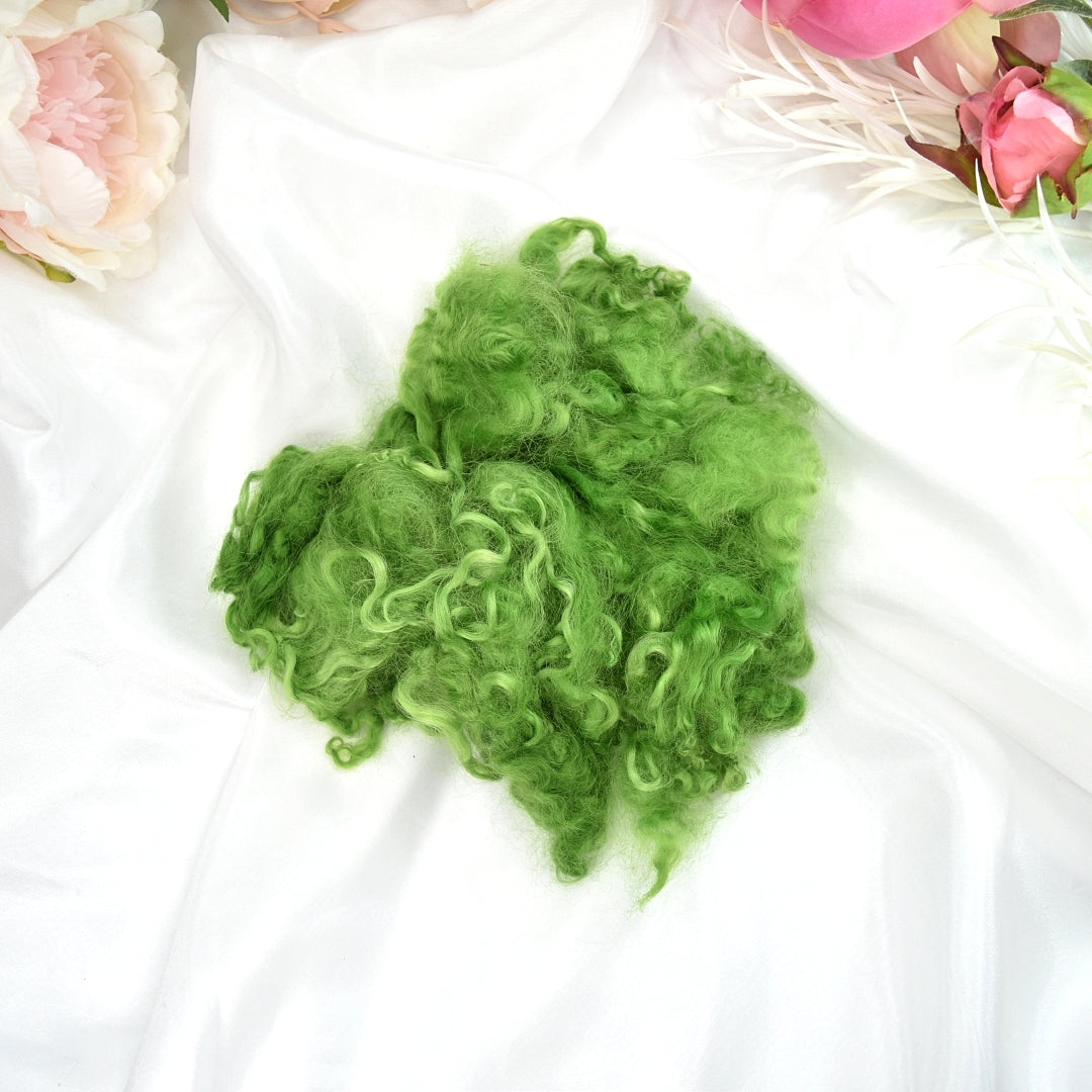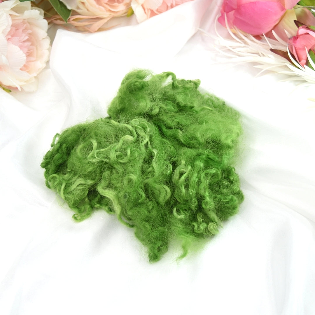 Tasmanian grown English Leicester locks hand dyed in a single green colourway.