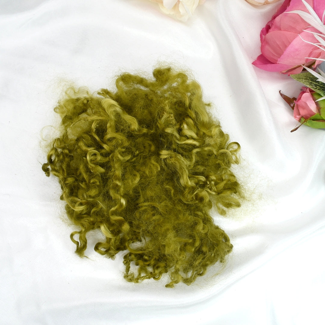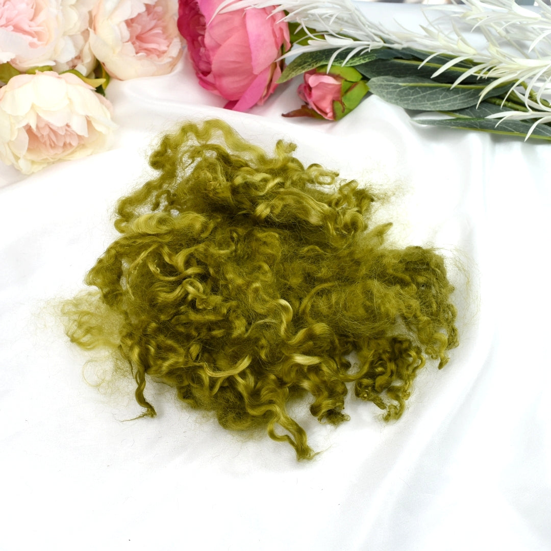 Tasmanian grown English Leicester curly locks hand dyed in a olive green colour.