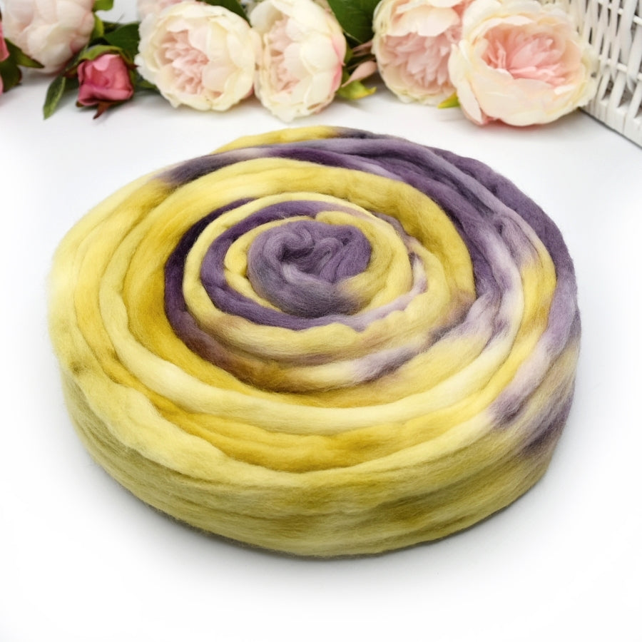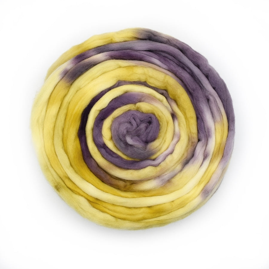 Superfine 18.5 micron Australian Merino wool tops (roving), hand dyed using Australian made dyes in beautiful variegated colours.