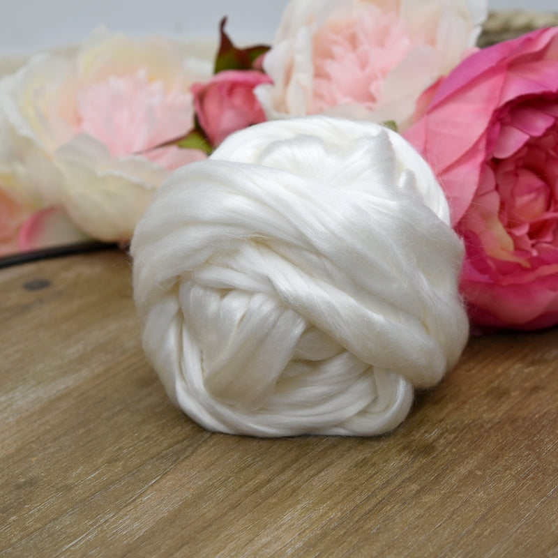 White shiny undyed Mulberry Silk Top/Roving/Sliver - 50 grams